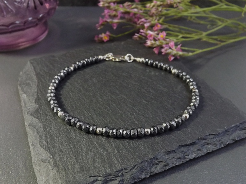 Fabulous faceted haematite, a silvery-grey gemstone with a metalic lustre, interspersed with sterling silver making an incredibly versatile bracelet that will tone in with any colours that you are wearing.
