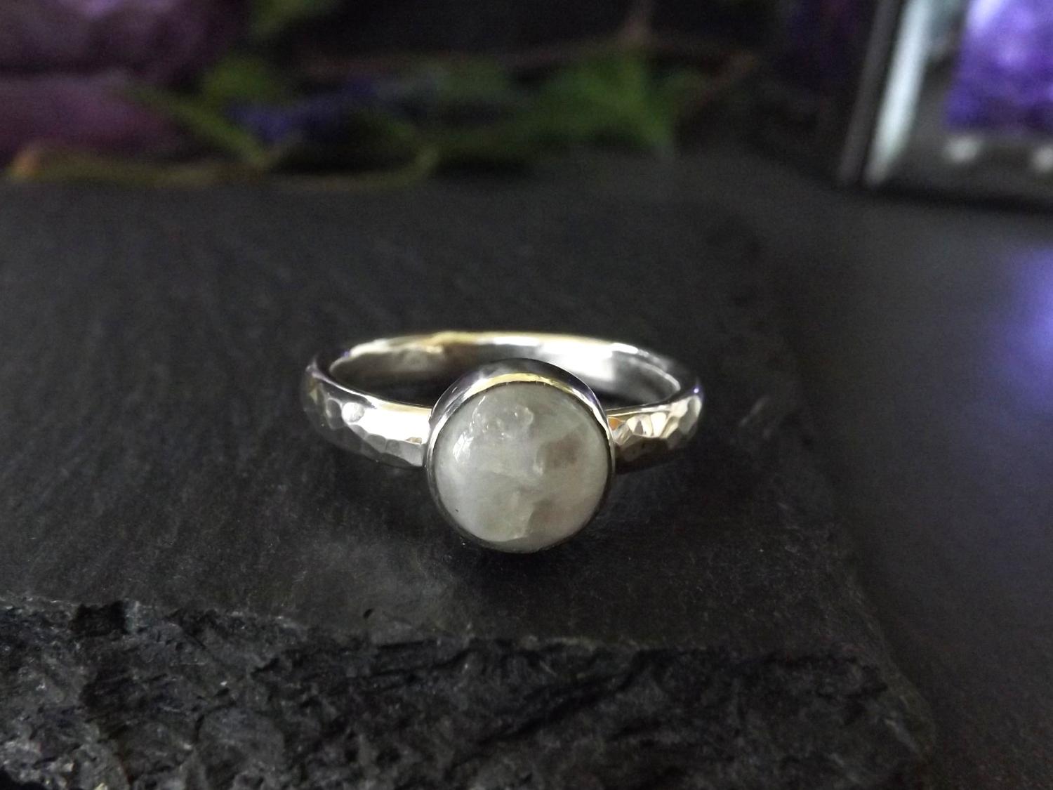 Rainbow Moonstone Hammered Silver Ring - size Q