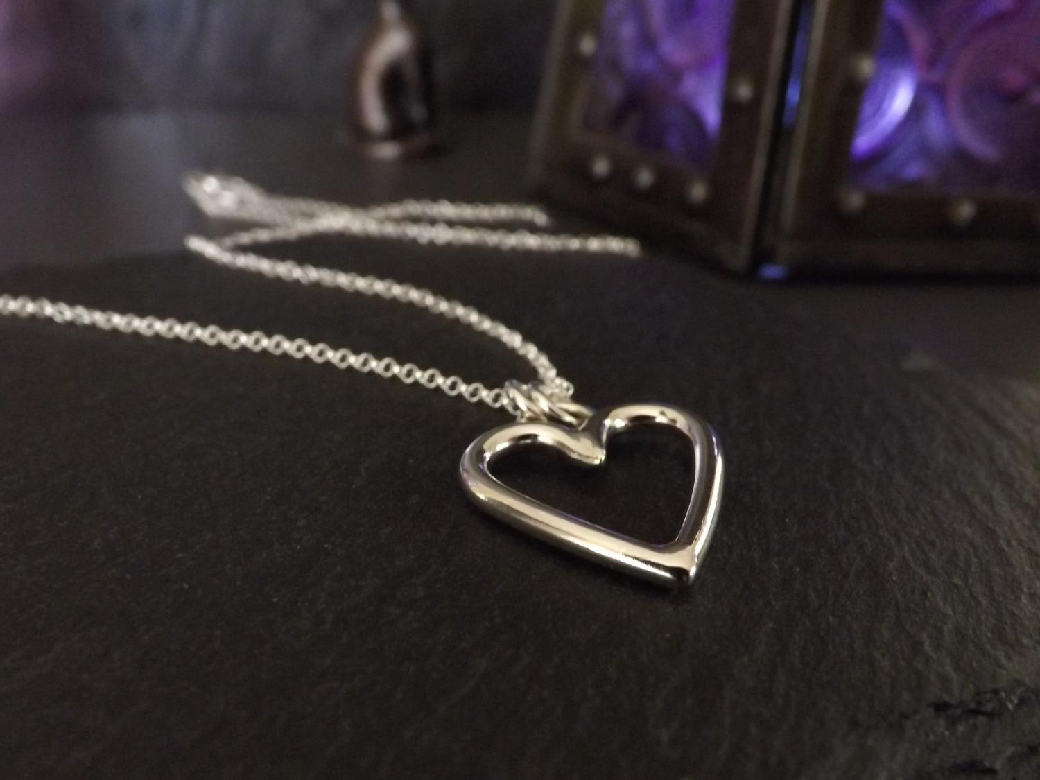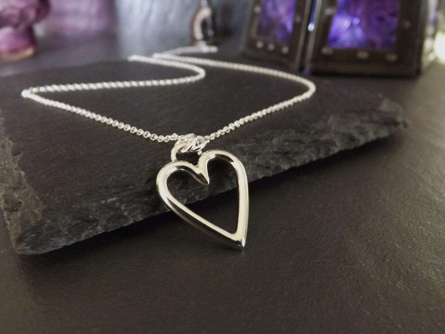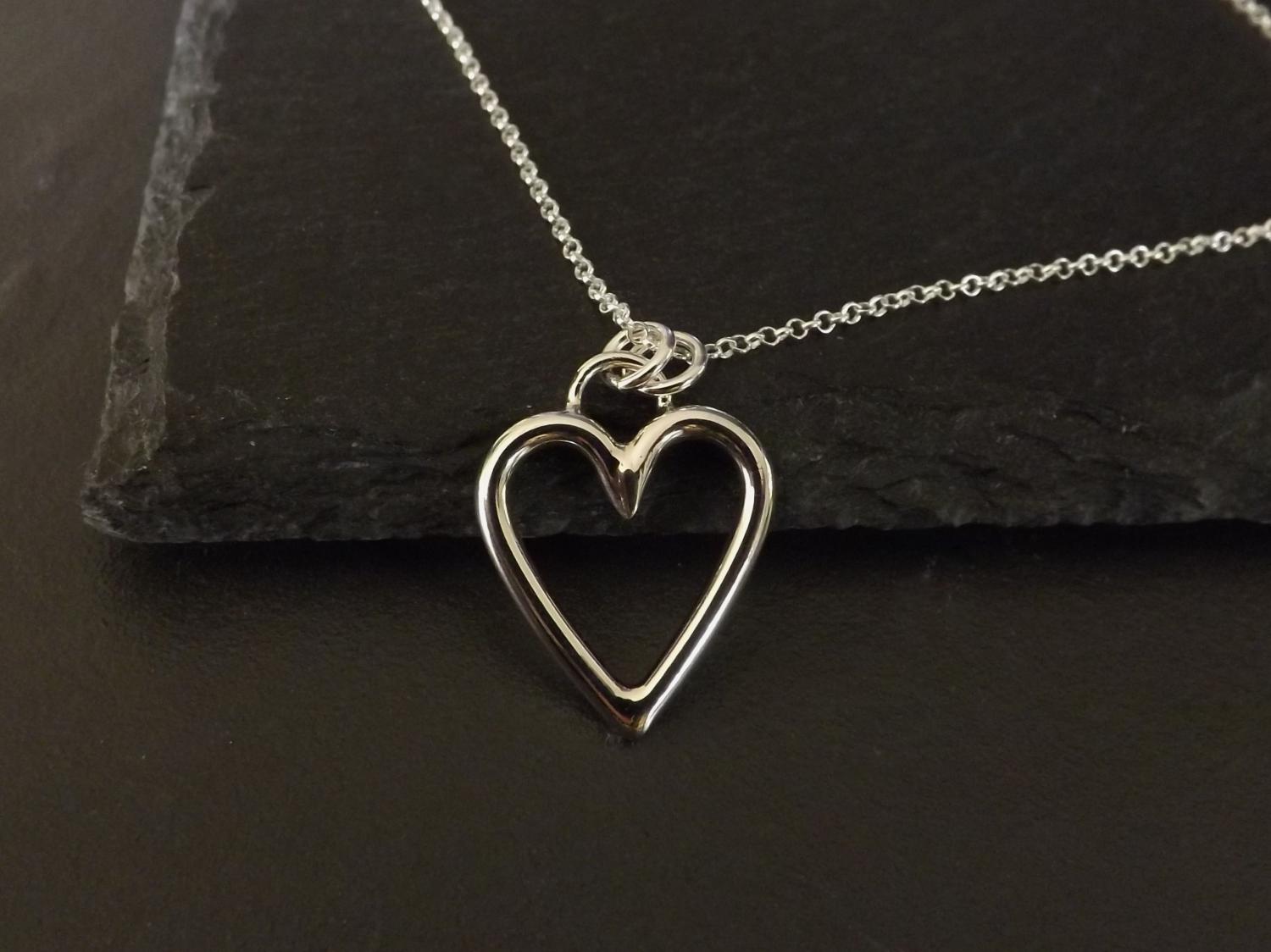 Open Heart Silver Pendant Necklace (medium)
