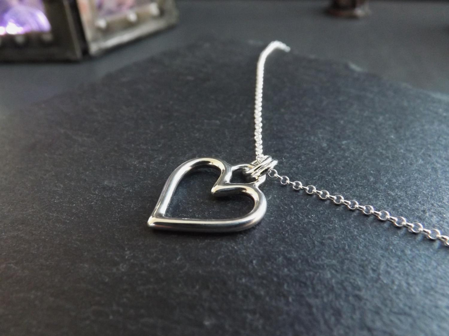 Open Heart Silver Pendant Necklace (small)