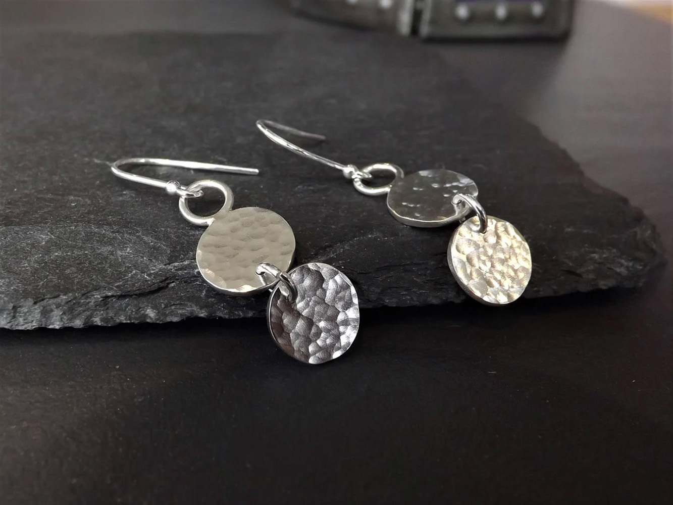 Blue Sodalite Silver Dangly Earrings with Hammered Silver Hearts
