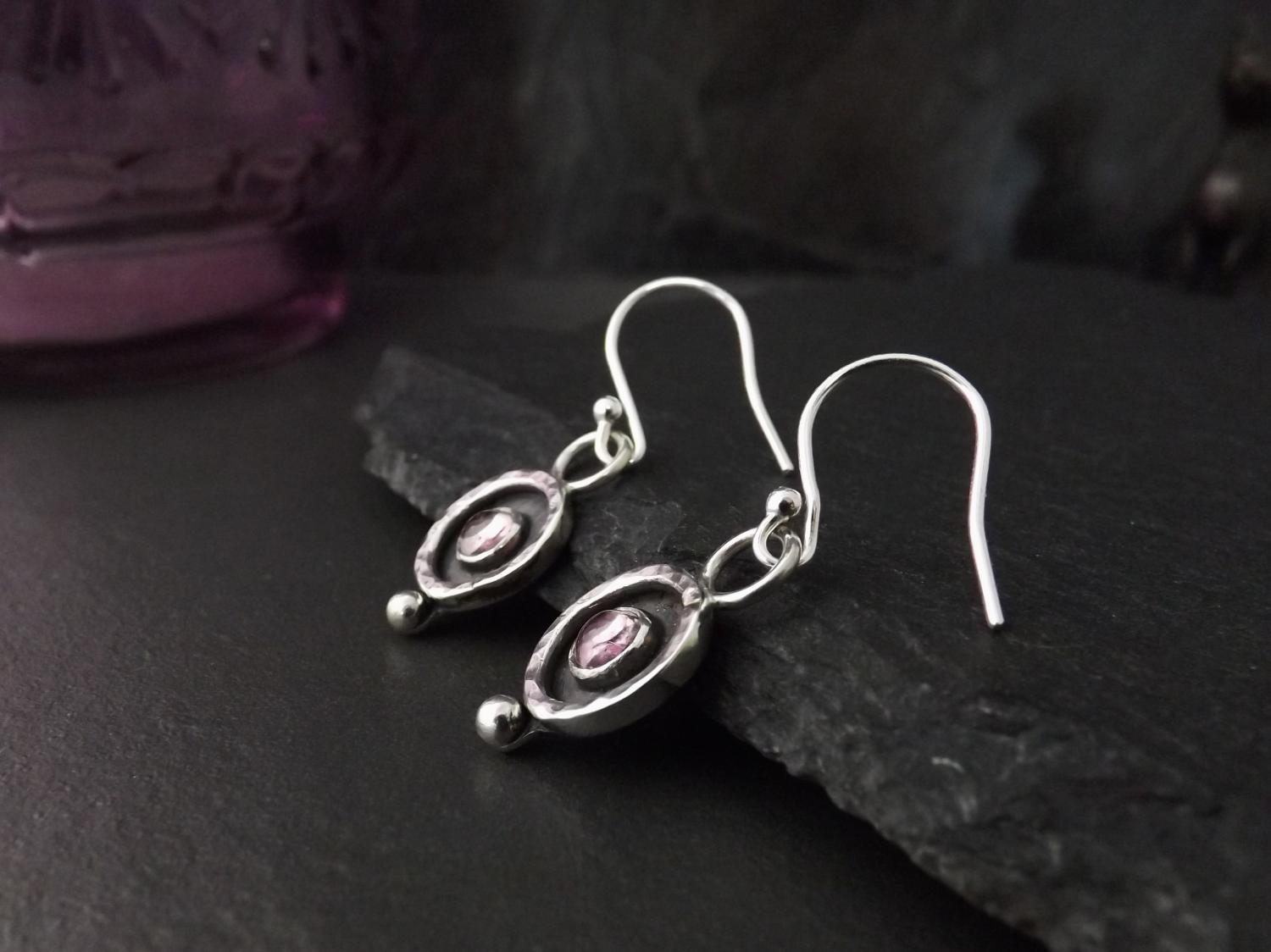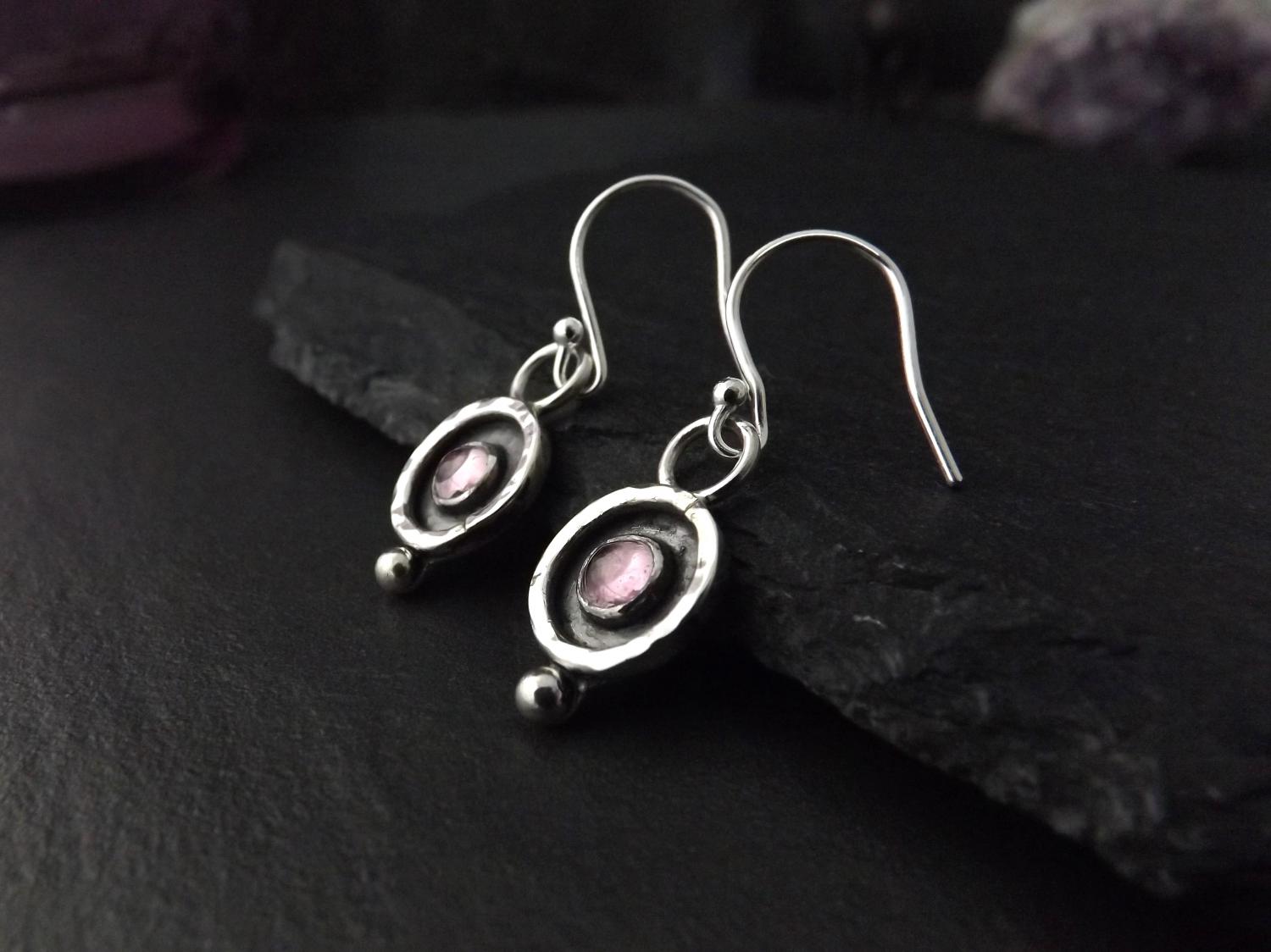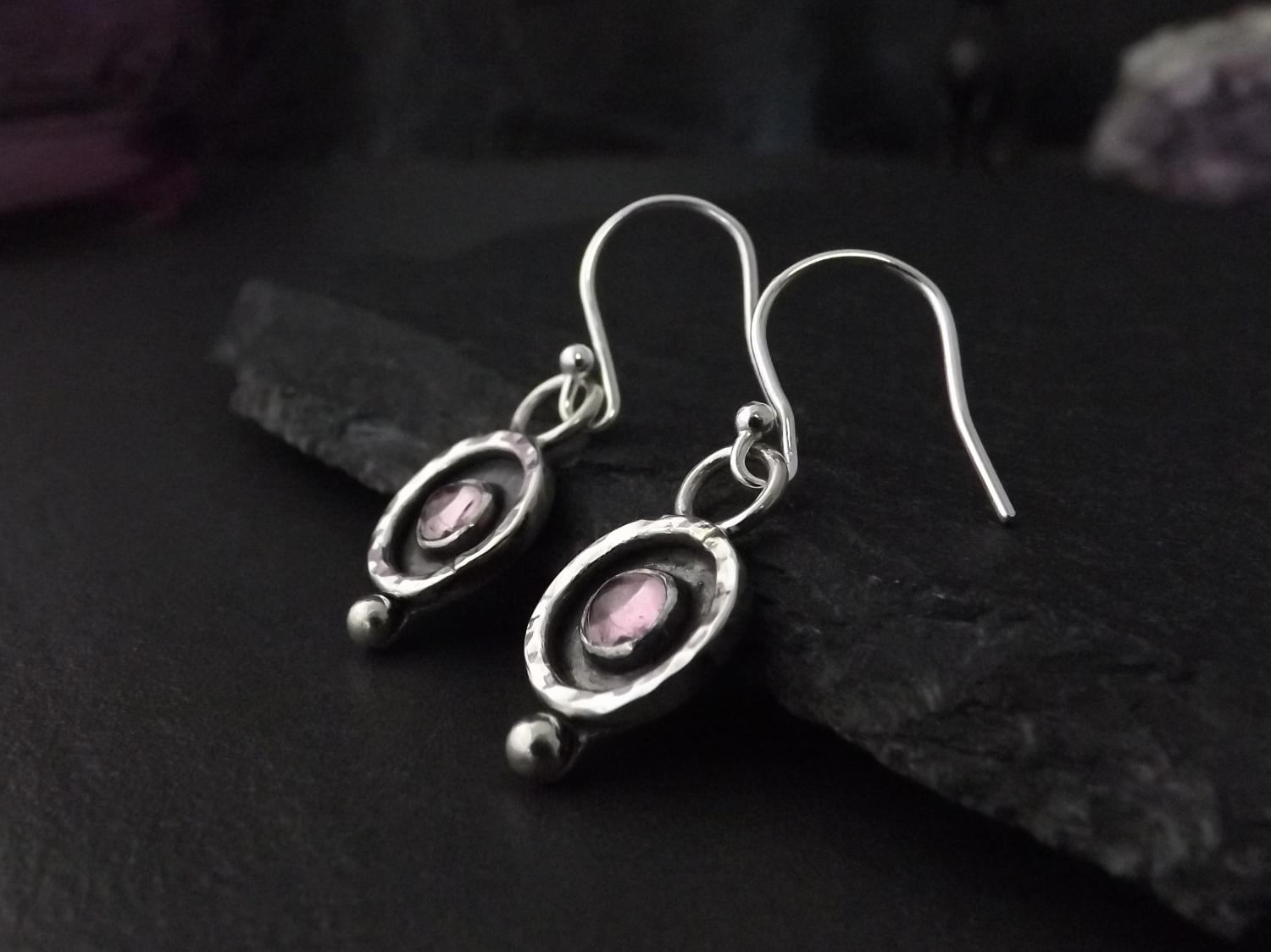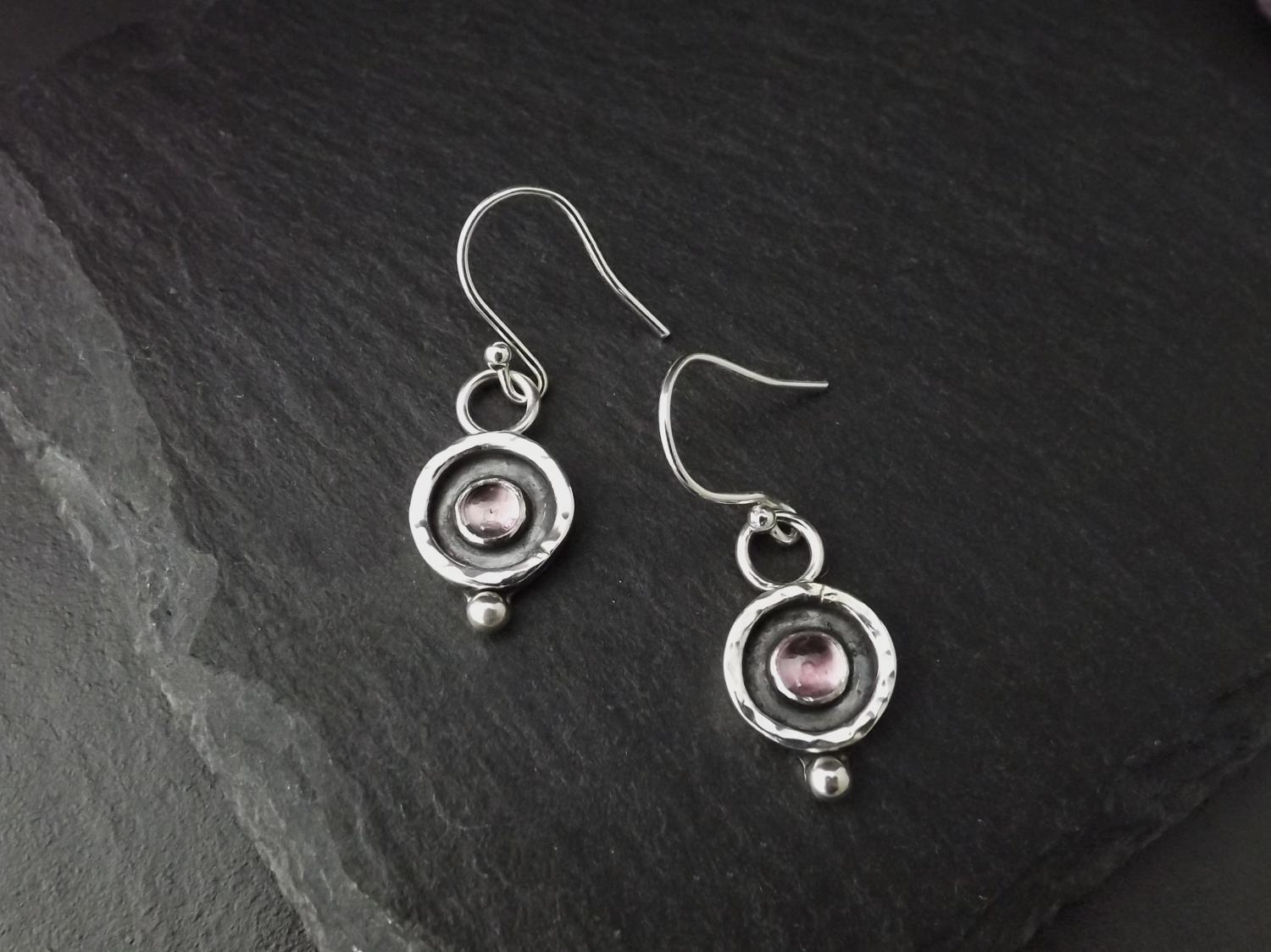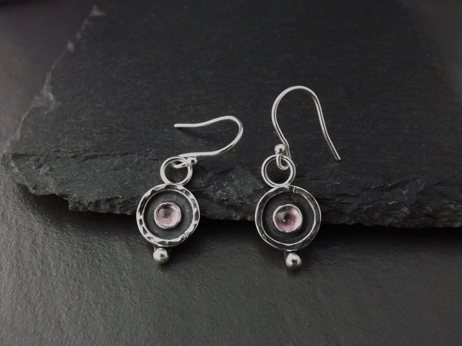 Pink Tourmaline in Hammered Silver Circles Dangly Earrings