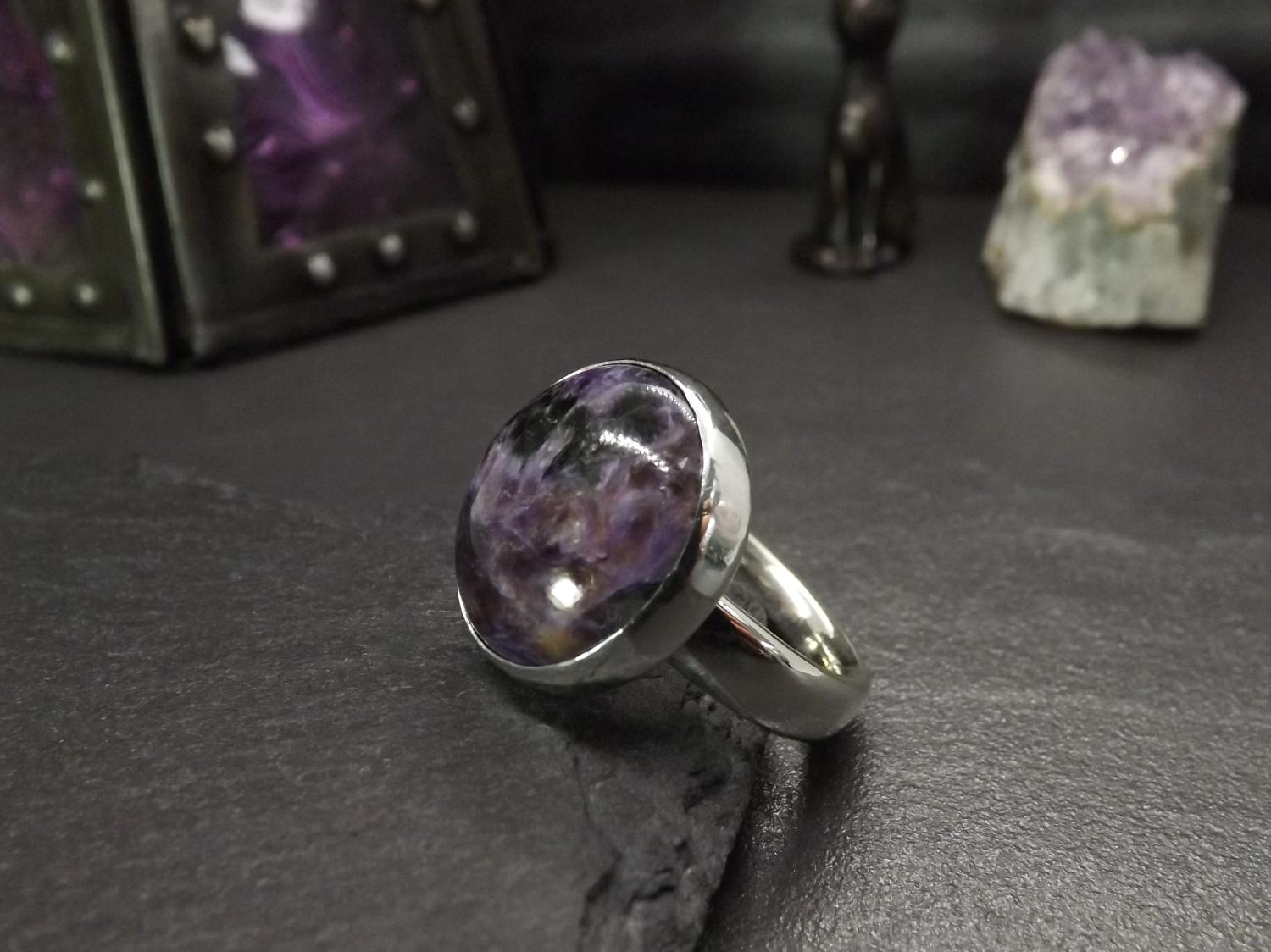 Charoite Chunky Silver Statement Ring - size O