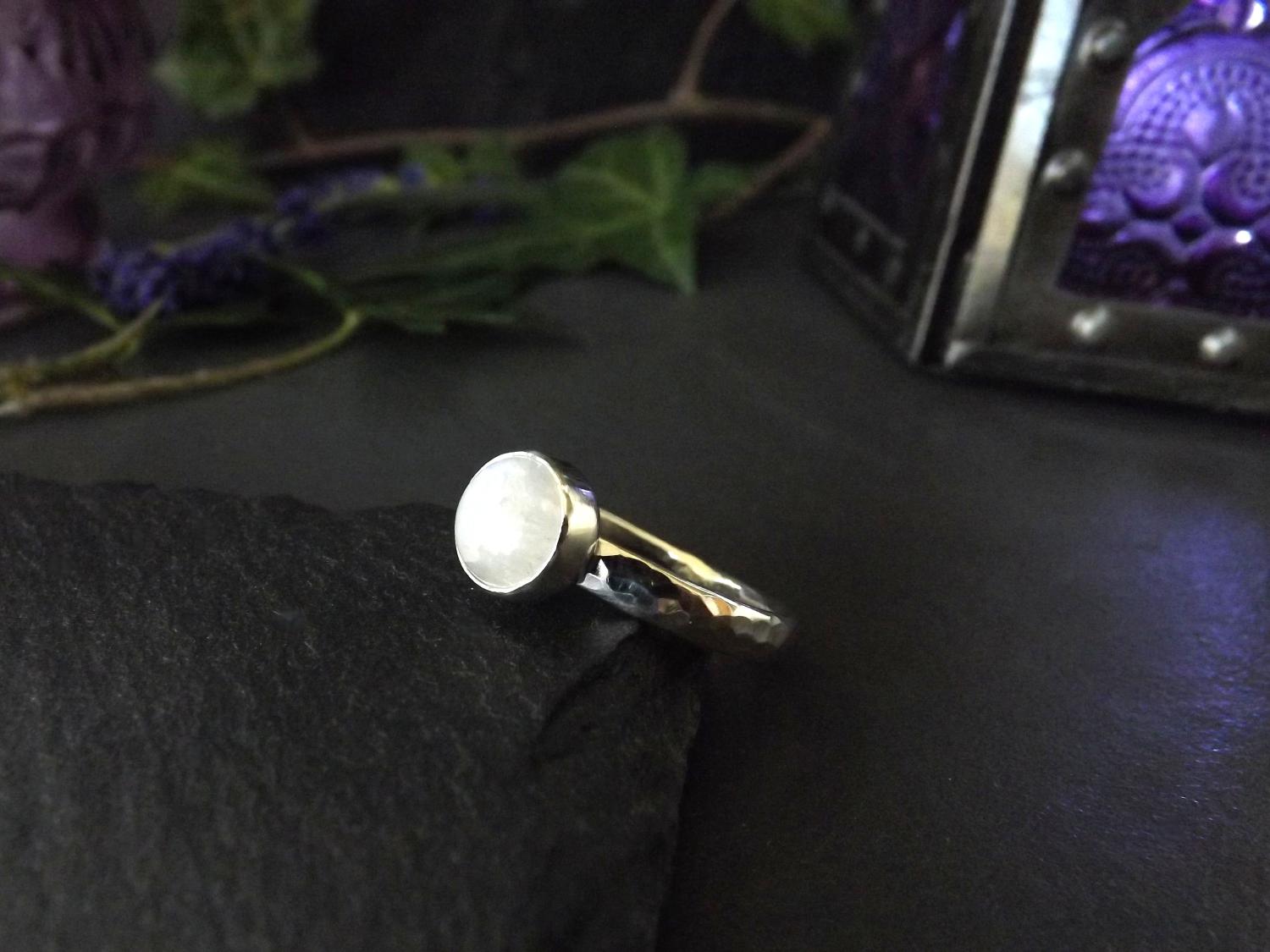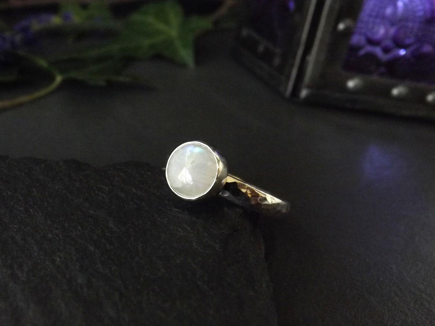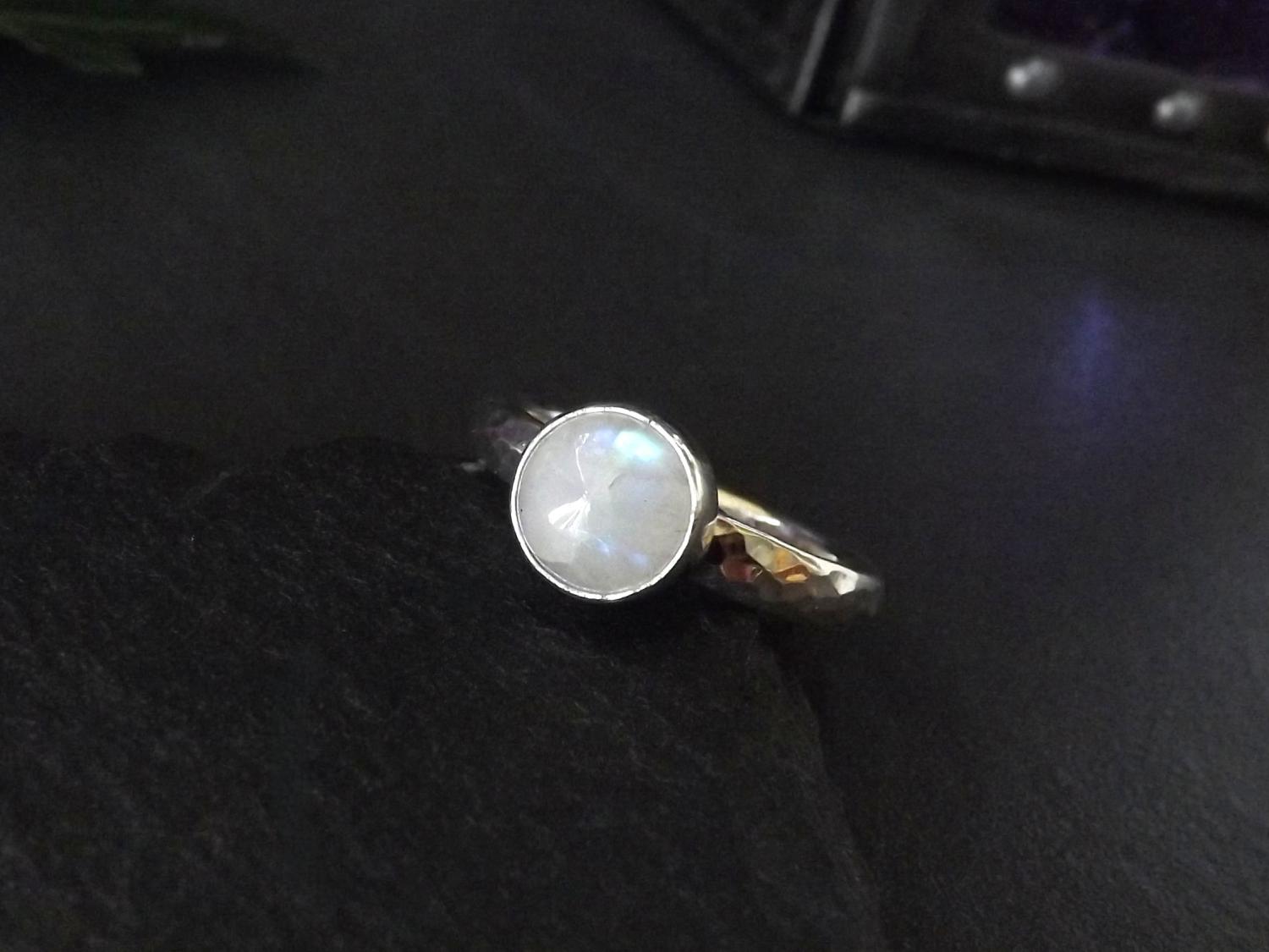 Rainbow Moonstone Hammered Silver Ring - size Q