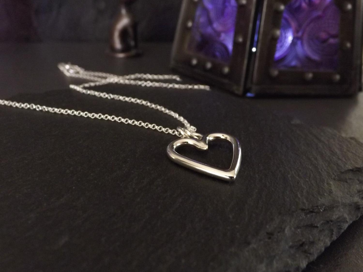 Open Heart Silver Pendant Necklace (medium)