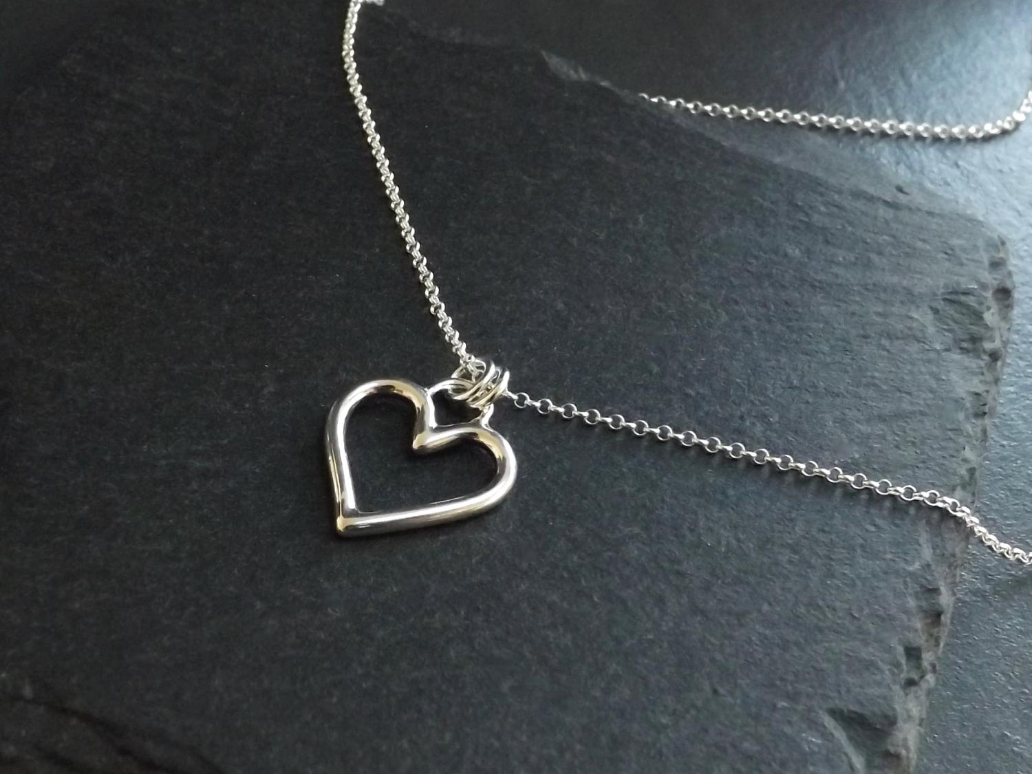 Open Heart Silver Pendant Necklace (small)